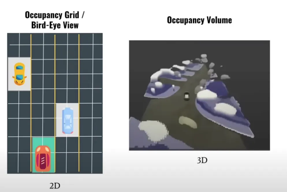 Occupancy Network占用網絡引入了高度信息,實現了真正的3D感知。在之前的版本中,車輛可以識別訓練數據集中出現的物體,但對于未見過的物體則無法識別,而且即使認識該物體,在BEV中也只能判斷其占據一定程度的方塊面積,而無法獲取實際形狀。Occupancy網絡通過將車輛周圍的3D空間劃分成許多小方塊(體素),實現了對每個體素是否被占據的判斷(其核心任務不在于識別是什么,而是在于判斷每一個體素中是否有東西被占據)。